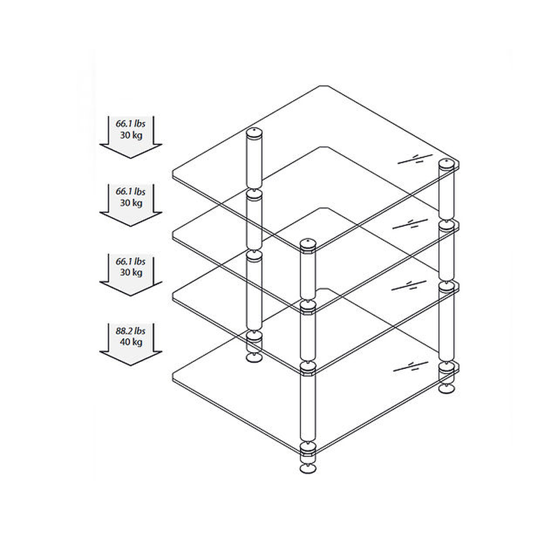 Le NorStone Bergen a été conçu pour une séparation optimale des électroniques grâce à un découplage idéal de chaque étagère. Les pointes et contre-pointes garantissent un amortissement idéal des vibrations induites par les composants électroniques. Ce joli meuble noir est construit en acier et verre laqué noir. Le Bergen 2, avec ses 4 étagères, constitue le meuble idéal pour les systèmes haute- fidélité haut de gamme. Sa hauteur est idéale pour le placement d une platine vinyle à l’étage supérieur. Vous apprécierez notamment le parfait alignement des étagères avec celles du Bergen AV 2 pour donner naissance à une belle combinaison.
