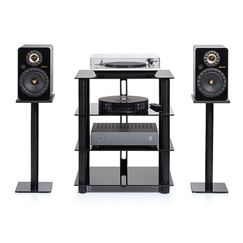 Le meuble hifi NorStone Epur 4 est le plus haut de la gamme Epur. Il peut aisément recevoir l’ensemble des éléments de votre chaîne Hi-Fi, avec, par exemple, sur l’étagère supérieure une platine vinyle. Il pourra aussi accueillir votre téléviseur et votre chaîne home-cinéma. Le guide câbles finalisera harmonieusement et proprement vote installation.