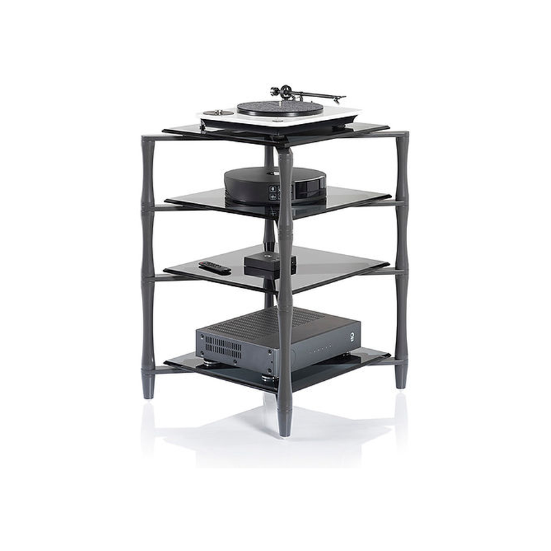 Le meuble NorStone Slender HiFi est constitué d’une structure en métal sur laquelle reposent 4 plaques en verre trempé. Les plaques ne reposent pas directement sur le métal mais sur des bandes de PVC pour absorber toutes les vibrations indésirables. Le plateau supérieur du meuble NorStone Slender HiFi peut supporter un poids maximal de 25 kg, les autres étagères peuvent accueillir un appareil pesant jusqu’à 50 kg. Le meuble hi-fi NorStone Slender HiFi est également doté de pointes de découplage pour une absorption irréprochable de toutes les vibrations et ainsi offrir des conditions de fonctionnement optimales à votre système.