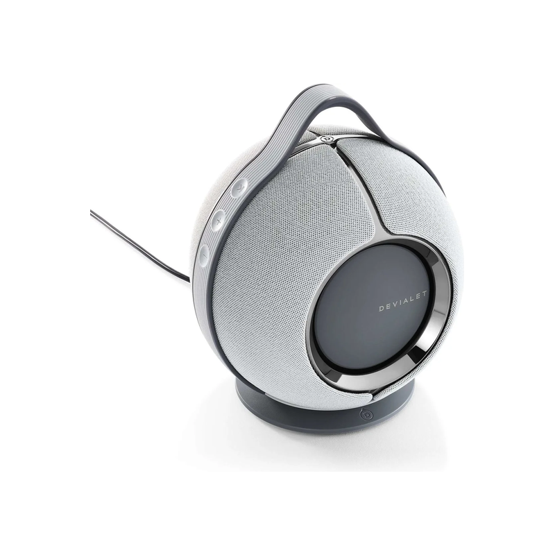 Station de charge dédiée à l’enceinte Devialet Mania, assurant une recharge pratique et une intégration élégante.