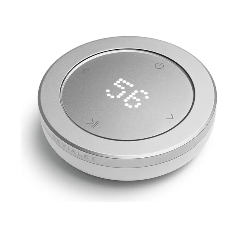 Télécommande Devialet au design raffiné, conçue pour un contrôle simple et fluide des enceintes et amplificateurs.